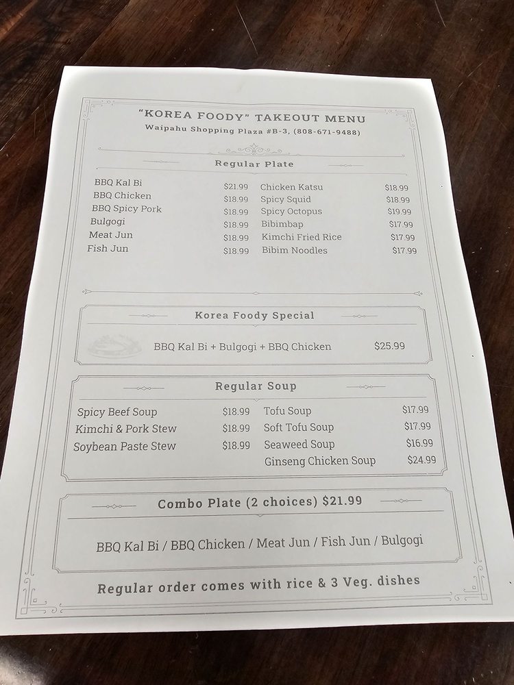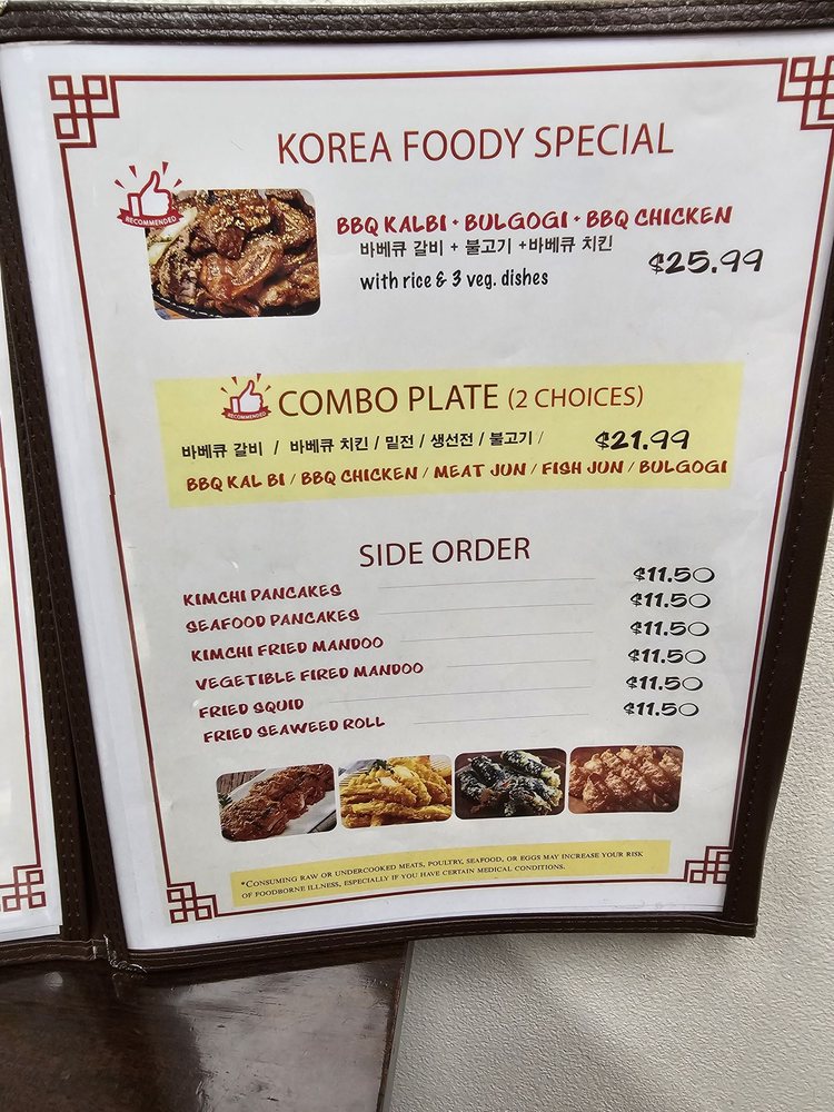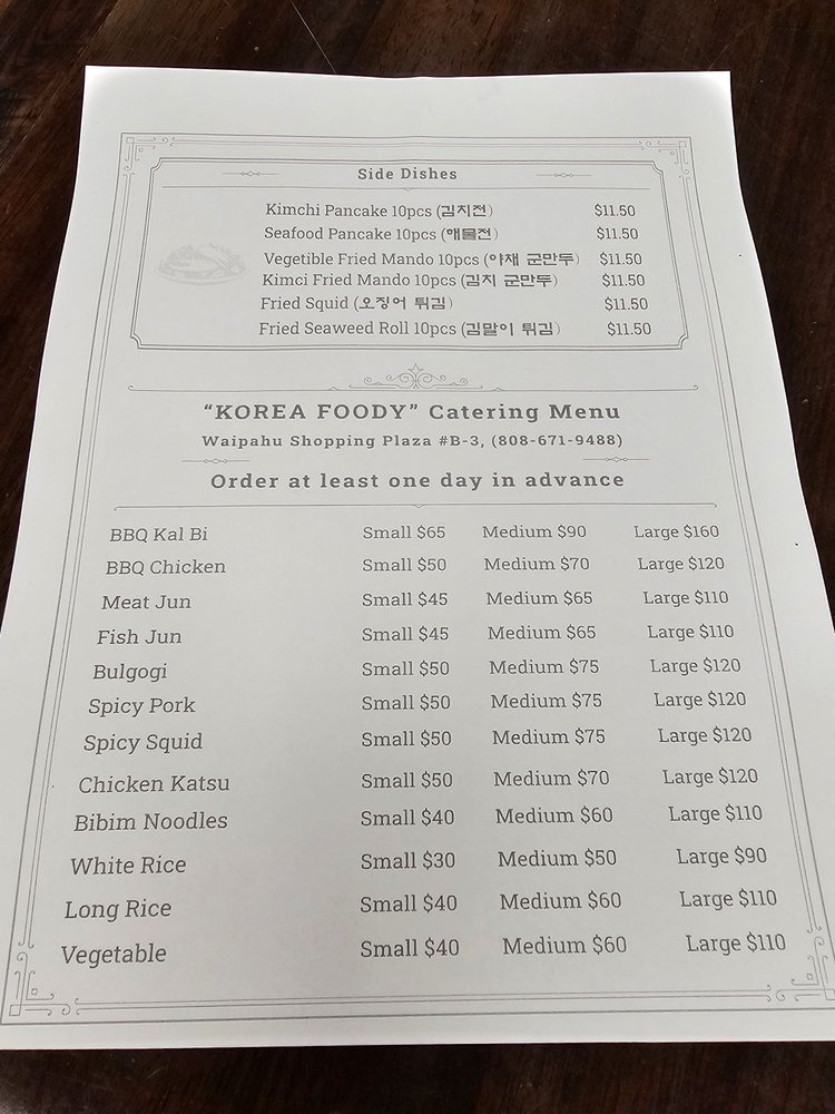 Korea Foody, a Korean restaurant located in Waipahu, HI, offers a wide range of delicious dishes with vegan and vegetarian options. Customers praise the friendly service and authentic Korean flavors, including favorites like kimchee pancake, fish jhun, spicy pork, bbq chicken, and bibimbap. The ambiance is described as homely, and the kimchi is noted for its delicious taste. Standout dishes include the stone pot bibimbap and unique seafood pancake served as individual patties for extra crispiness. Korea Foody also provides catering and takeout services, making it a great option for group gatherings. With excellent service, tasty food, and a cozy atmosphere, Korea Foody is a must-visit for Korean cuisine enthusiasts in Waipahu.
